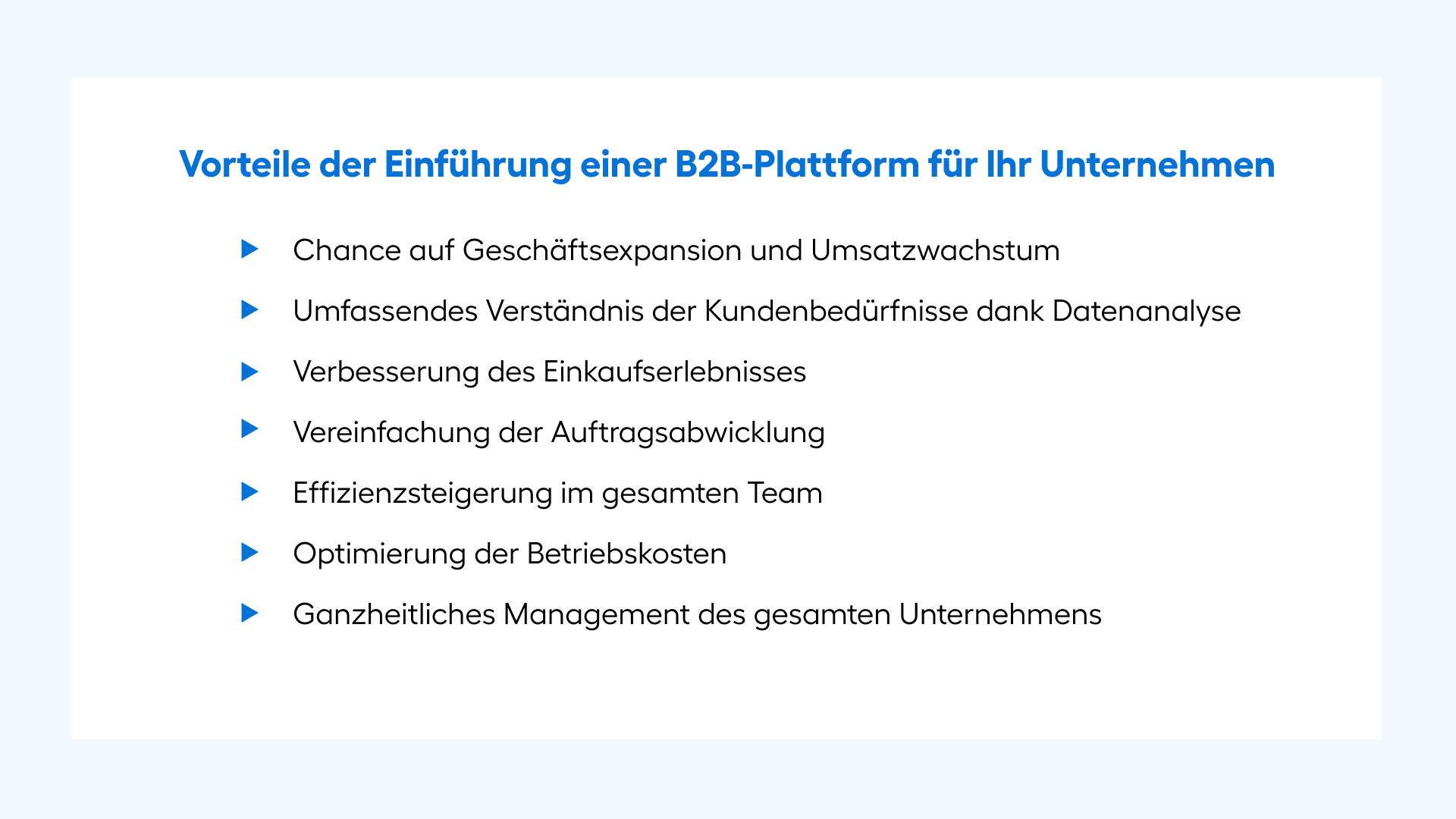 Ihr Online-Geschäft erzielt immer höhere Gewinne, Kundenerwartungen werden erfüllt und Kosten gesenkt – doch das sind nicht alle Vorteile, die eine B2B-Plattform bietet. Wobei hilft ihre Einführung noch?