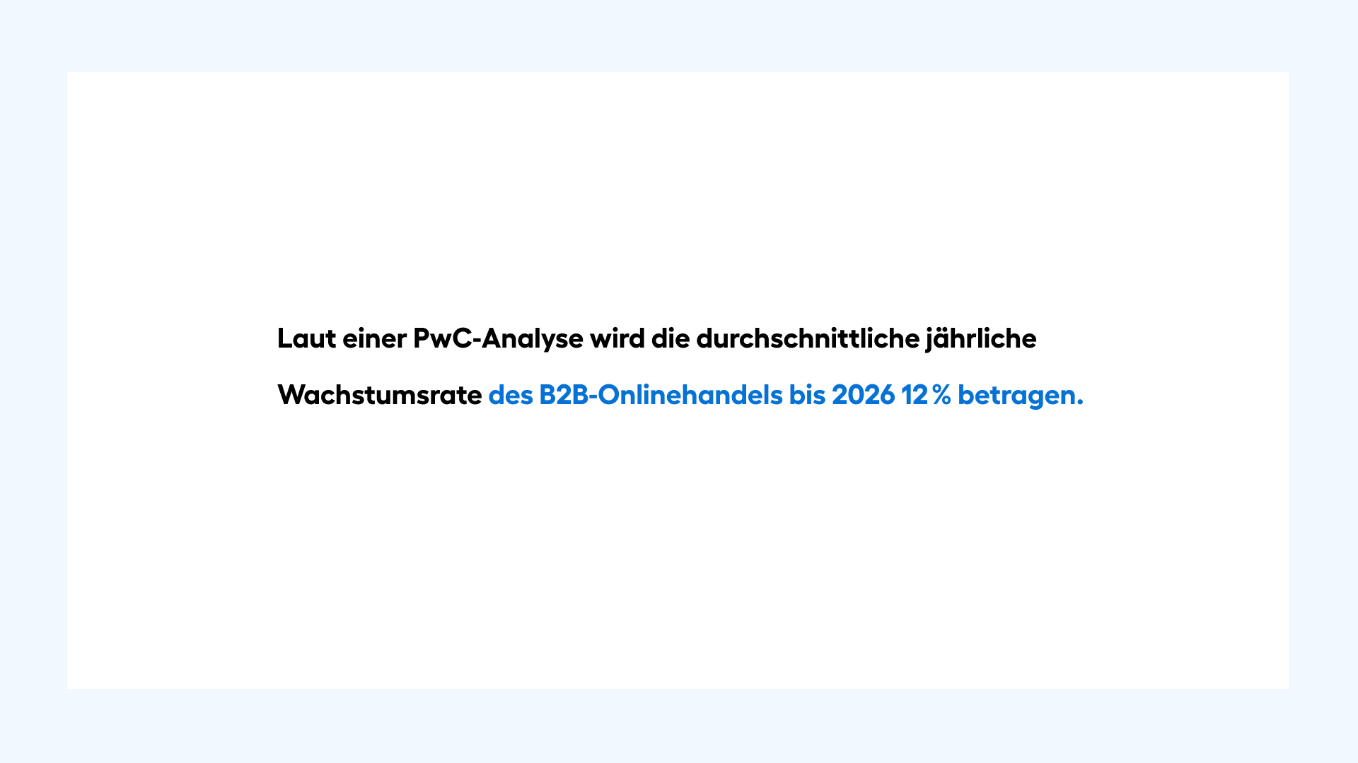 Laut einer Analyse von PwC gewinnt der Online-B2B-Handel stark an Dynamik – sein jährliches Wachstum wird bis 2026 ganze 12 % betragen. Diese Entwicklung könnte bald dazu führen, dass Online-Transaktionen im B2B nicht nur eine Chance auf Wettbewerbsvorteile, sondern eine Notwendigkeit darstellen. Es lohnt sich daher, bereits jetzt die Entscheidung für die Einführung einer eigenen B2B-Plattform zu treffen. Hilfreich ist in diesem Zusammenhang die Lektüre dieses Artikels, in dem wir erklären, was eine B2B-Plattform ist und die 7 wichtigsten Vorteile der Einführung eines B2B-Systems im Unternehmen vorstellen!
